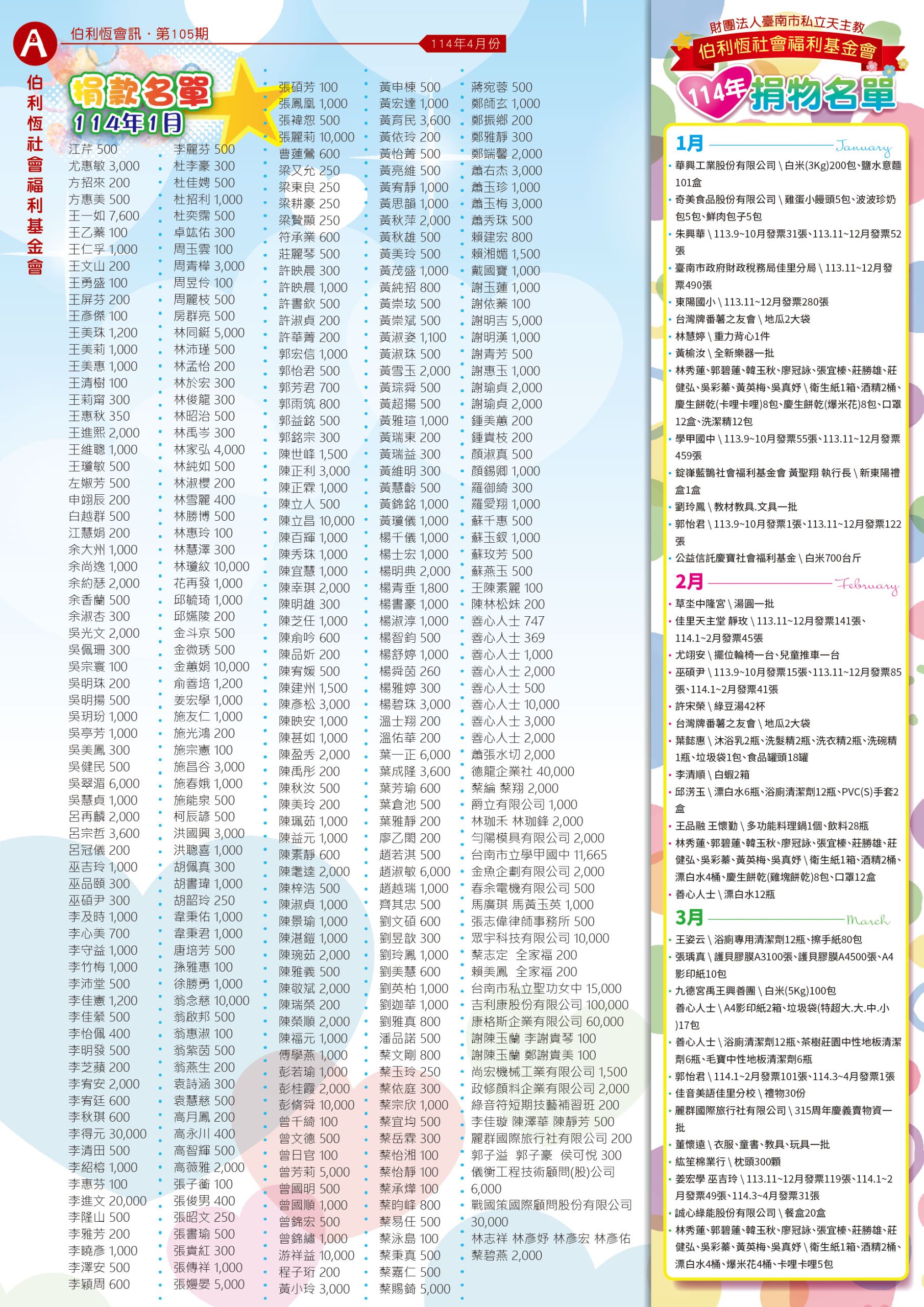 會訊第105期(報載114年1~3月的活動)