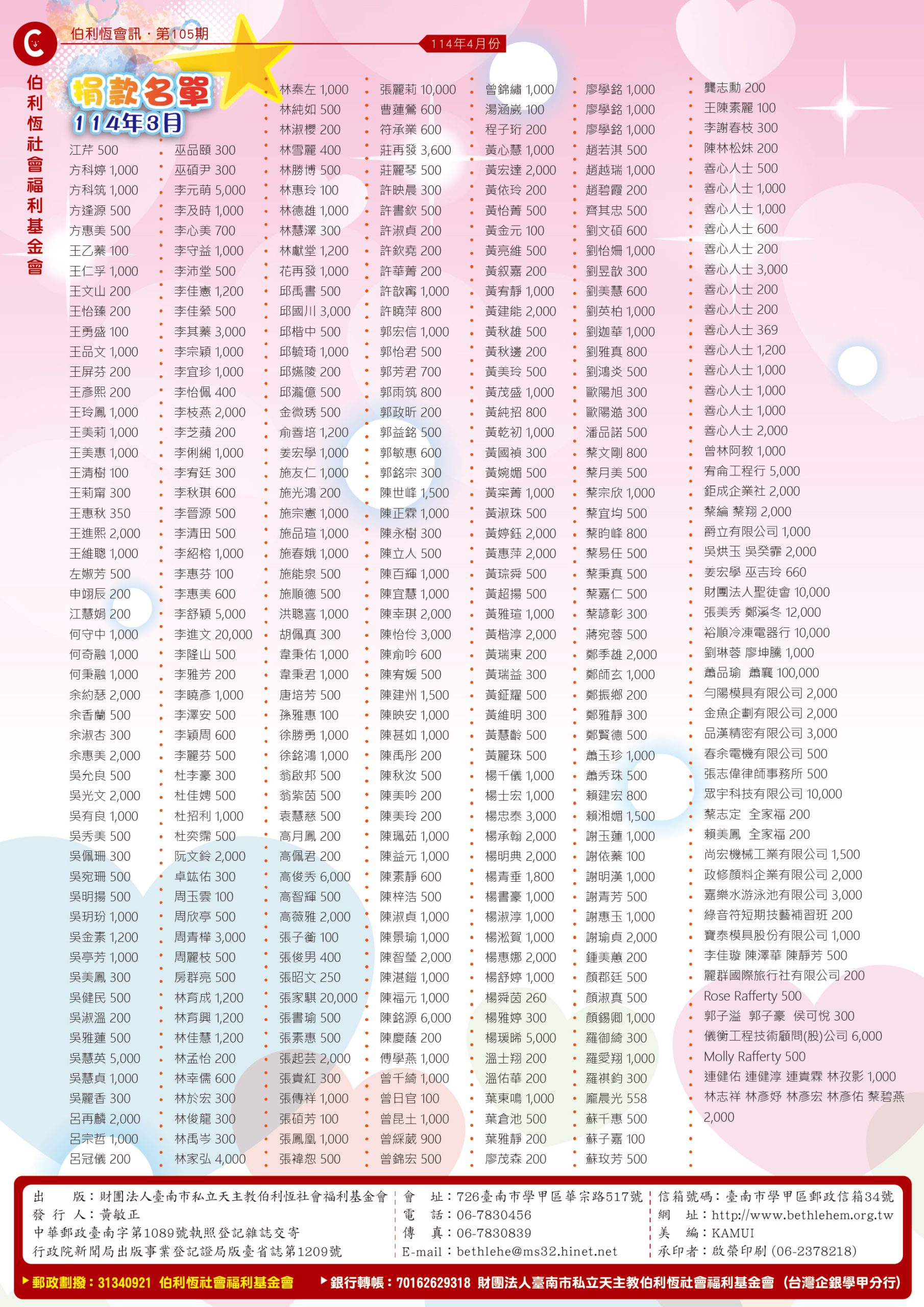 114年全年捐款徵信