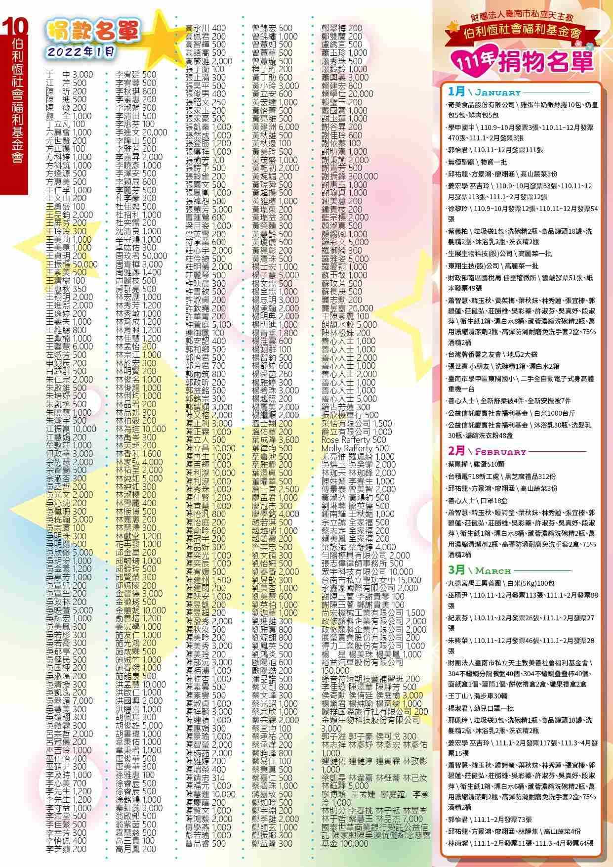 111年-全年捐款徵信