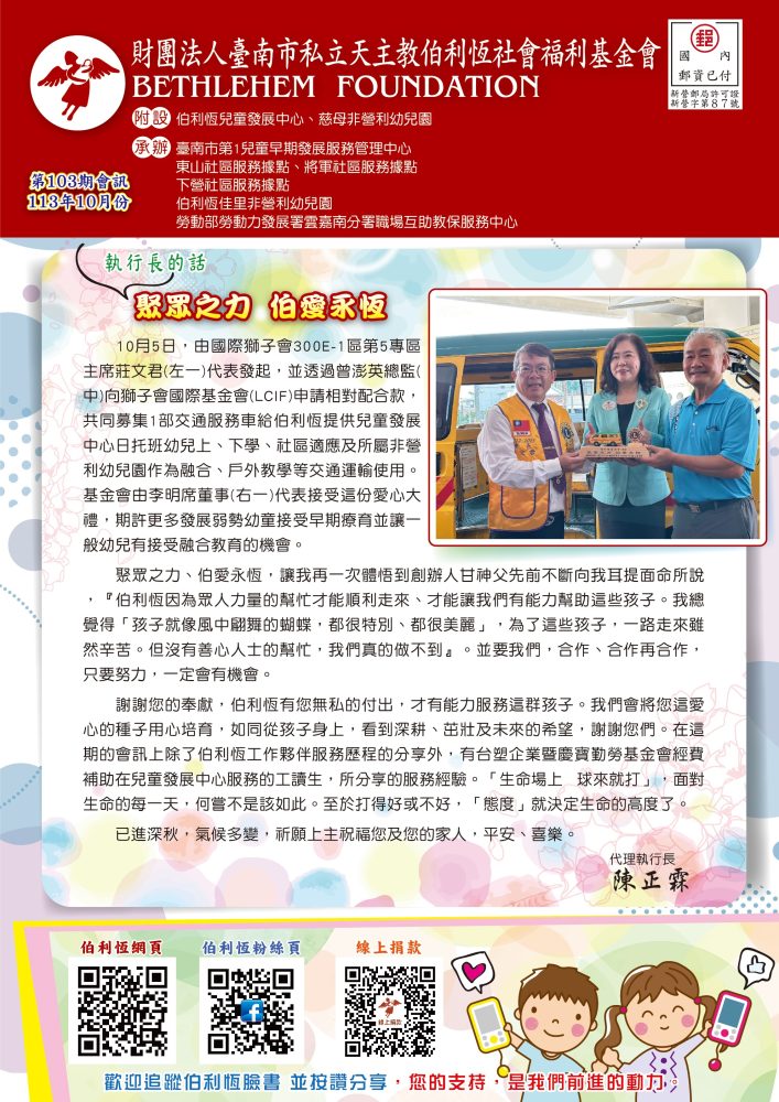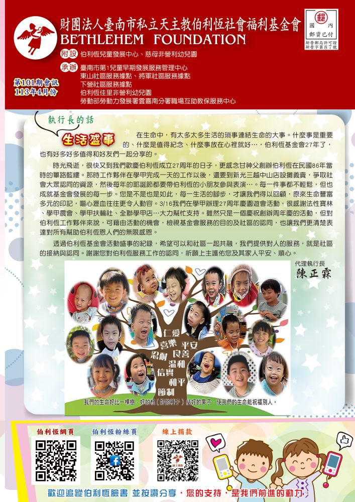 伯利恆兒童發展中心今年度高分通過2024年「王詹樣基金會早療評核補助計畫」 日托補助金額396,000元 到宅